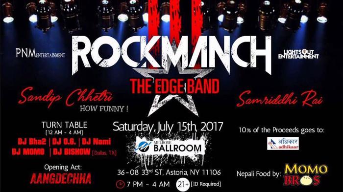 Rockmanch The Edge Band Live For the First Time in New York City along with Samriddhi Rai & The Ever Popular Comedian Sandip Chhetri (What The Flop / How Funny ) Saturday, July 15th Time: 7pm - 4am Melrose Ballroom - Valet Parking Available -