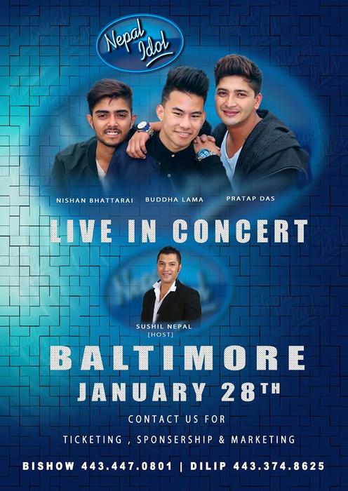 The Top 3 talents from Nepal Idol will be performing their first US TOUR concert in Baltimore on January 28th. Get ready to see your favorite idols.